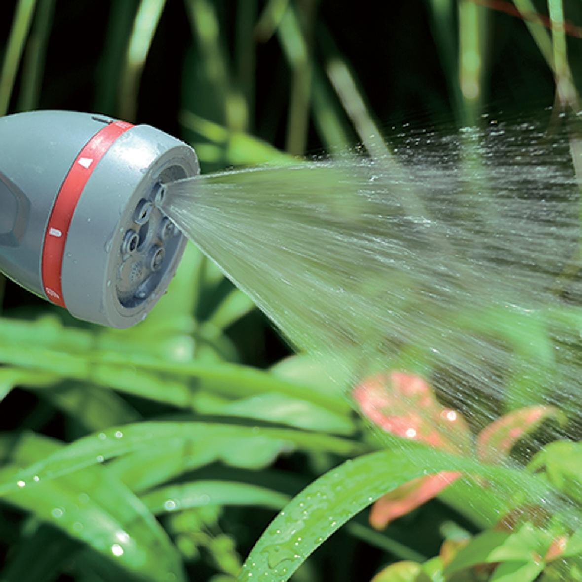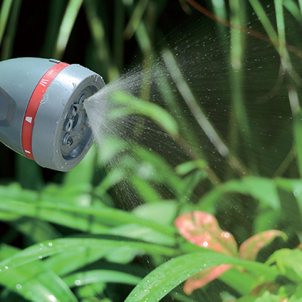 8段式水槍八種簡單易用的噴水模式:中心、錐形、溪流、薄霧、垂直、平坦、飽滿和淋浴